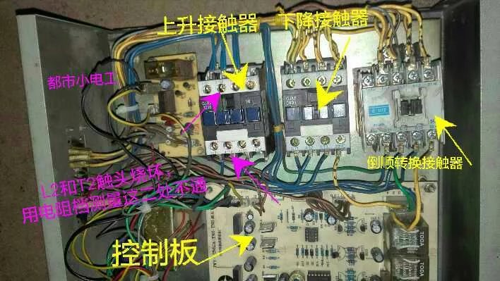 經觀察、診聽到控制箱里咔咔的聲音,好像有什么接觸不良;電機能手動下降說明電機沒問題,調壓器也沒問題,問題出在控制箱里。